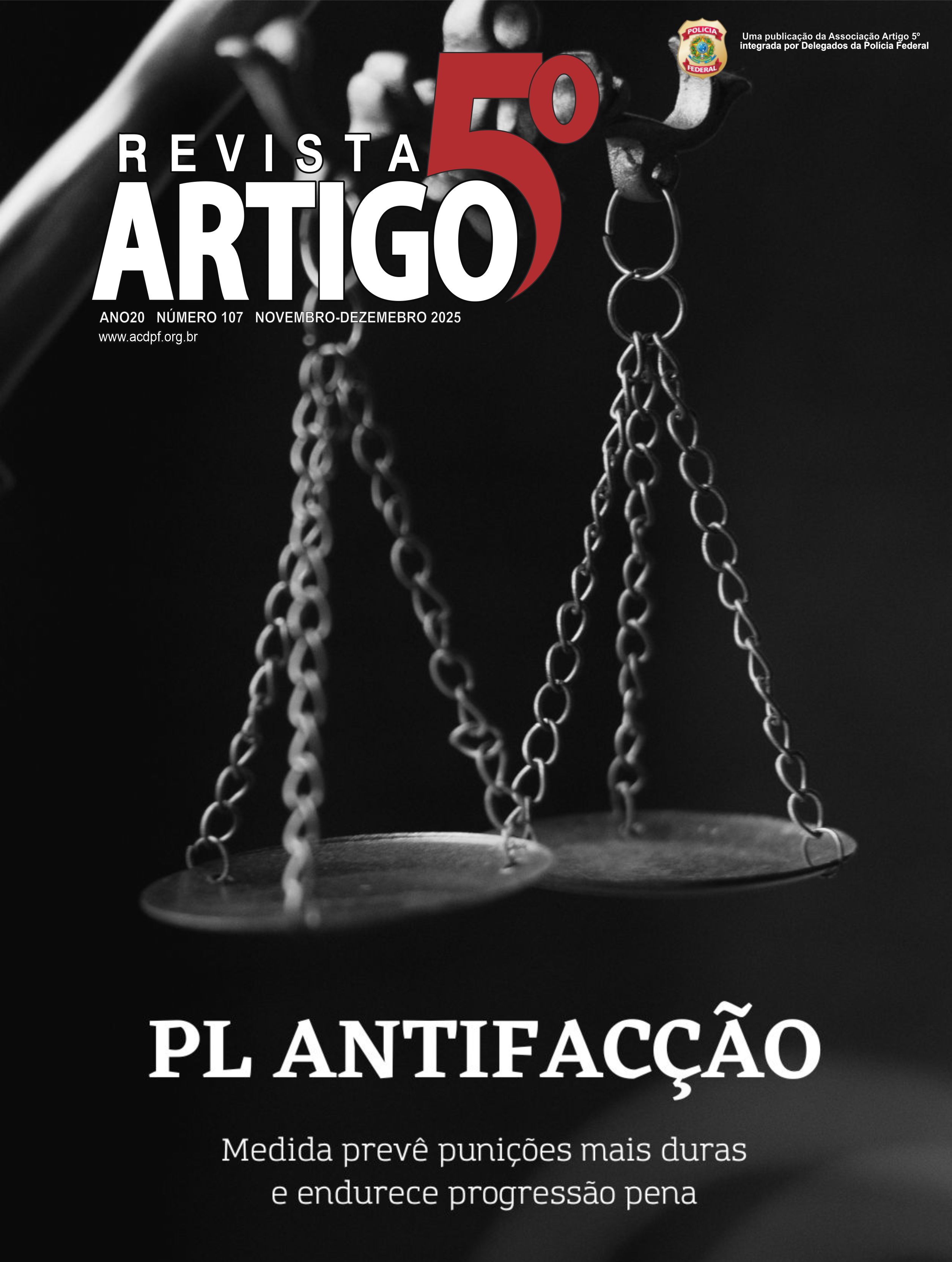 A Revista Artigo 5° é um órgão de comunicação da “ACDPF” Associação Cultural dos Delegados da Polícia Federal para Democracia, sendo disponibilizada bimestralmente na versão impressa e online aos nossos associados, patrocinadores, órgãos públicos, principalmente aos órgãos da polícia federal, além de demais interessados/assinantes.